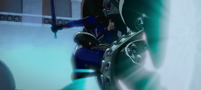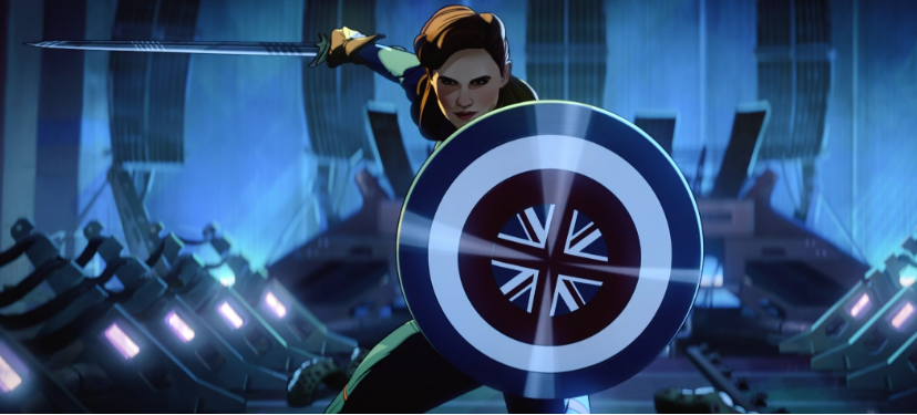 而佩姬代替史蒂夫成为战士之后,服装与美队是不同的,而是变成了英国队长。这个超级英雄在漫威里也是存在的,而且标志性的武器就是一把长剑,这个在《假如…?》第一集中佩姬大战九头蛇里也出现过。因此佩姬实际上是美国队长与英国队长的结合体,既有护盾又有长剑。