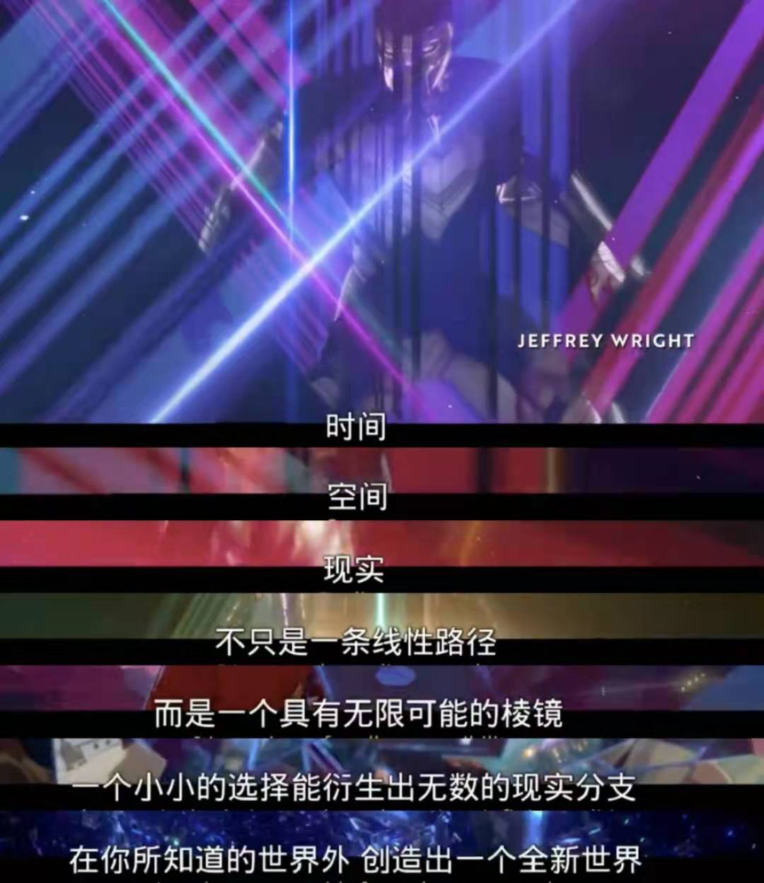 “时间、空间、现实不只是一条线性路径,而是一个具有无限可能的棱镜,一个小小的选择能衍生出无数的现实分支,在你所知道的世界外,创造出一个全新的世界。”在动画开头,主创团队直接用画外音点明了主题。在这部动画剧集中,每一集都为漫威宇宙开拓更多的可能性,都是一片片棱镜,共同构造出一个与现实相异的世界。