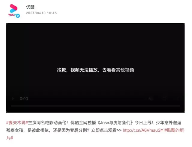 据称,其实很早之前就有中国片方购买了影片的版权,并确定了国内院线的公映计划。而新媒体版权交易也在很早就已经达成,并且一般像这样的影片网络版权也会卖给多家,优酷只是其中一方,上线也都会在同一时间上。之所以完全没有宣传,这其实是优酷的违规操作,提前上线了影片,当然这其中也存在一些片方和平台的版权协调问题。总之经过日本片方之后的介入协调,好在没有对影片的电影节展映,以及后续的公映环节造成影响。