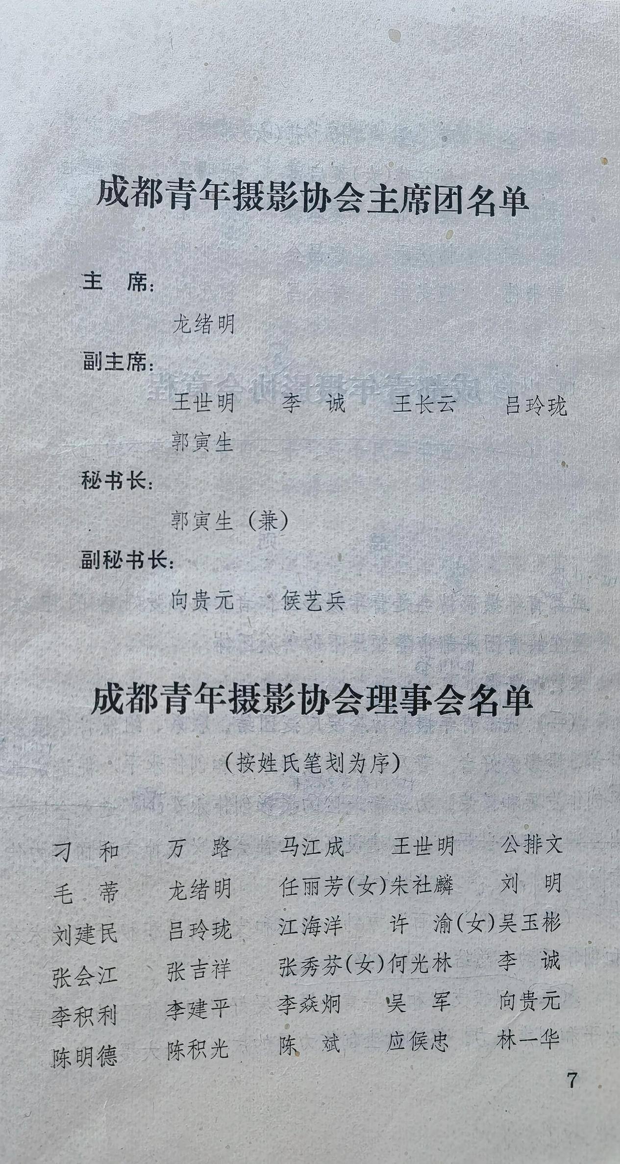 到了省会城市的我有了一个更大施展拳脚的空间,在紧跟着成立共青团成都市委的“成都青年摄影协会”。我胸有成竹的当上了这个主席,成立大会上,我作了《建设一支具有青年特色的青年摄影队伍》的报告,到会祝贺的副省长康振黄在大会祝辞后说:“你们选出了一位好主席……”