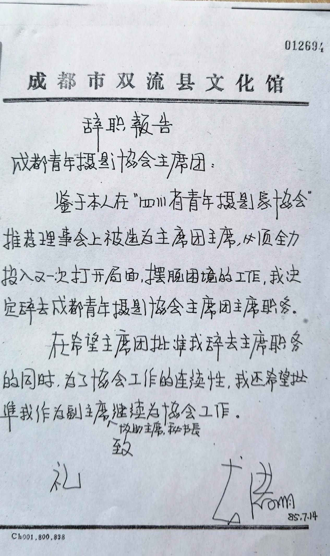 很快成都成立文联,要我前去参与组建摄协并驻会。拿着文联商调函的组联部长程玉书被双流的文化局长李秀文当场断然拒绝。原因很简单,“我们刚刚把他从集体转为全民……还附带了一句话,“这个人不好管。”