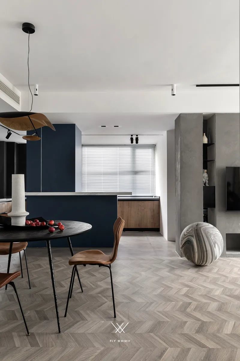 在这套121平米米的房子中,整体空间以极简的风格设计,并加入工业风的格调,加入绿植的装饰,还有蓝色、灰色的设计,也让空间显得朴素而高级。