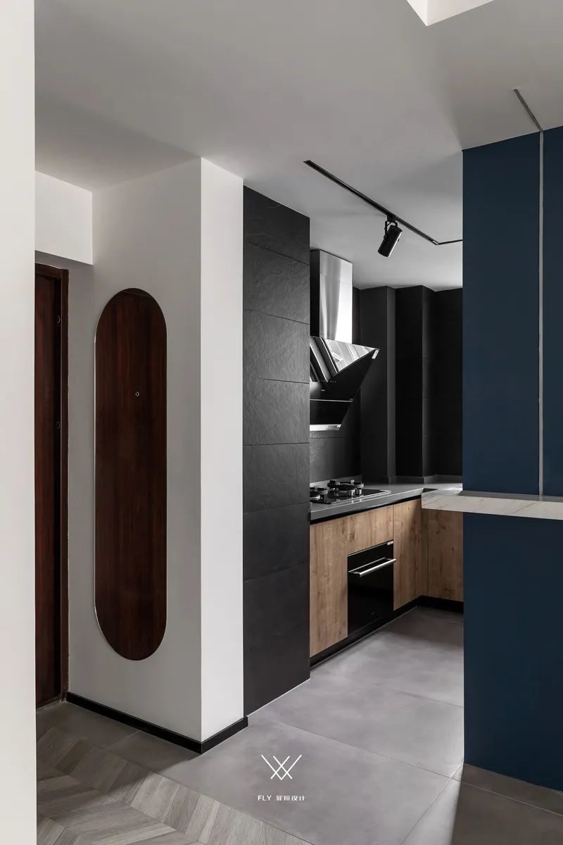 ▲厨房门靠近大门,旁边空间挂上一面全身镜,也让空间更实用有趣。