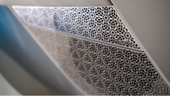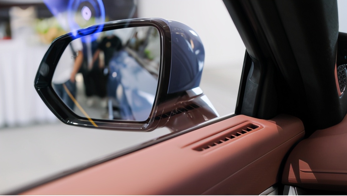 比较细节的是,车内配备了燕飞利仕音响,大概率会有主动降噪的功能;前车窗位置还设置了的空调出风口,冬夏行车时可以很好的预防车内雾气。