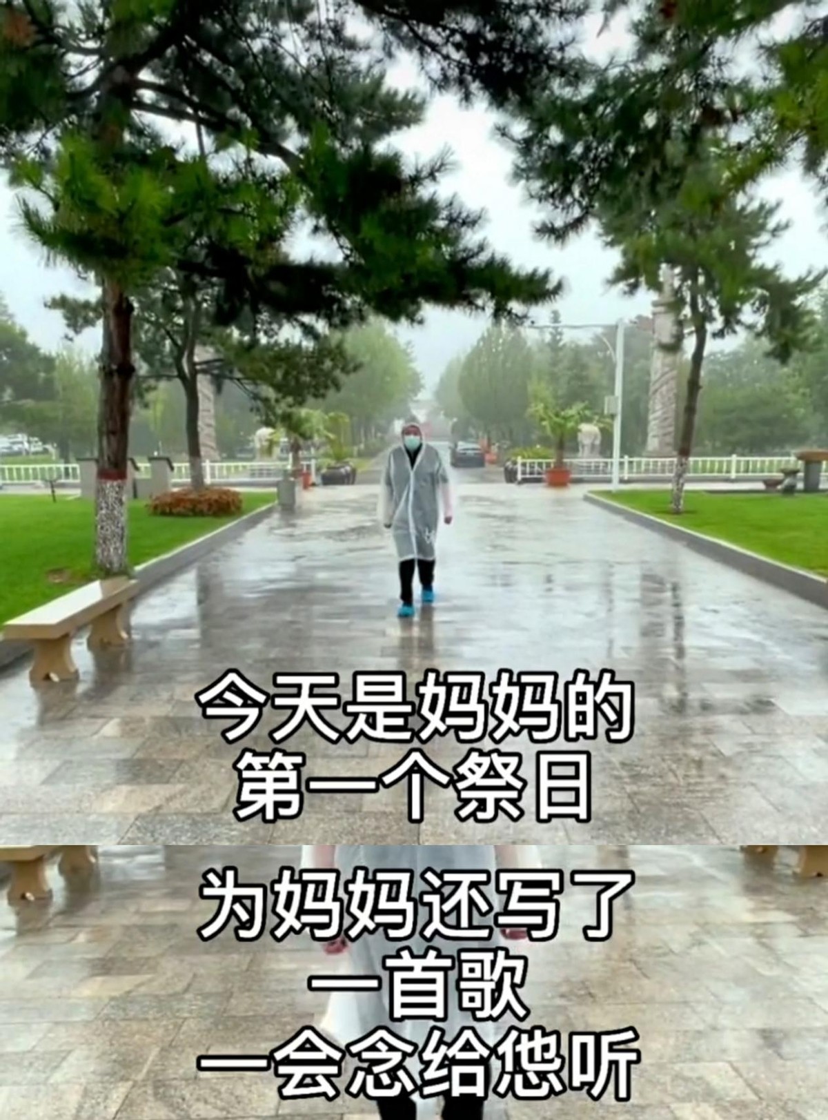 在母亲离开的第七天,王为念淋着大雨来到了母亲的陵园。他为他的妈妈还写下了一首歌,歌词句句触动人心。王为念在词中写道:“我后悔那个晚上没有和您连线,躺在您枕过的枕头上,我泪流满面。”