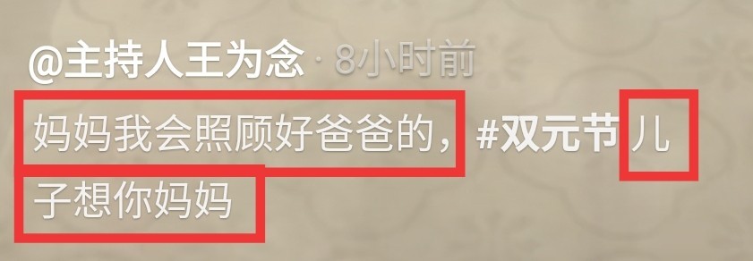 王为念在中元节这个特殊的时间点发布,也是在怀念自己的母亲。他在配文中写道:“妈妈我会照顾好爸爸的,儿子想你妈妈”文字中透露着悲伤,让人不得不为之感伤。