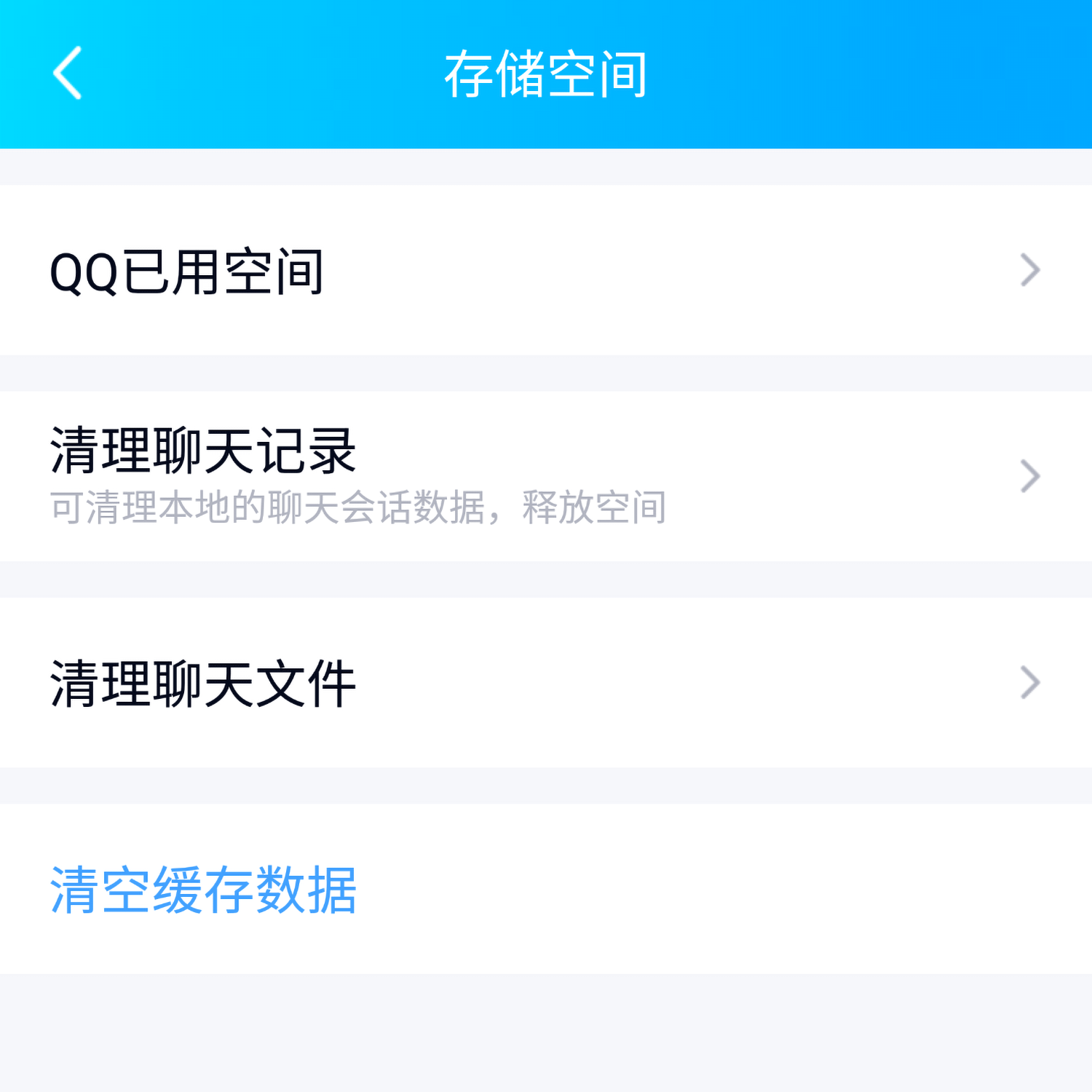 依次打开QQ的设置-通用-存储空间,可以看到清理聊天记录、清理聊天文件以及清空本地缓存的三大工具。选择相应的工具,按照引导清理空间即可。
