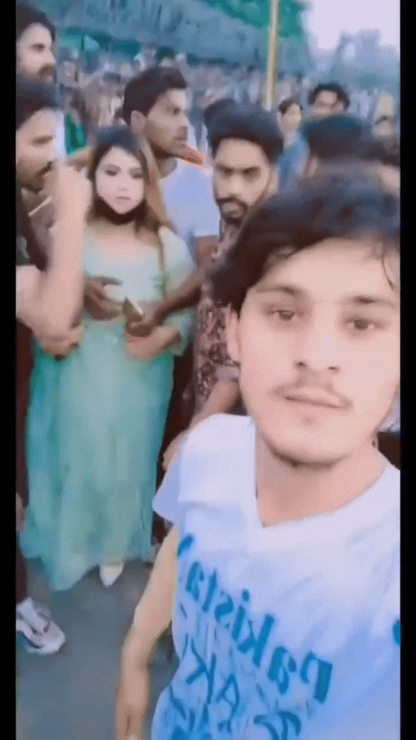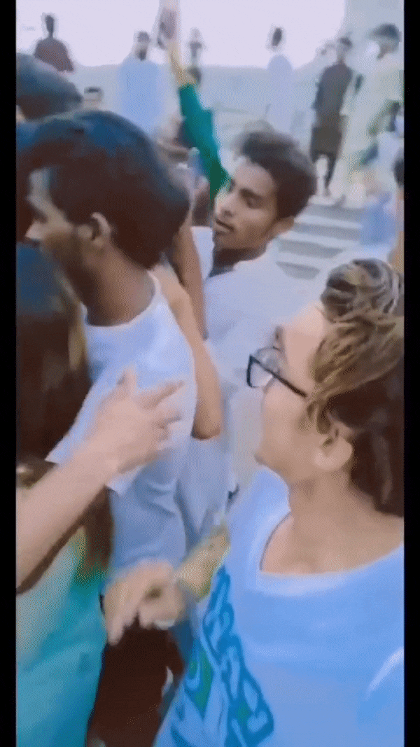 伴随着拍摄期间的唱跳,广场上的男性开始逐渐向Ayesha靠拢,最初还只是几个人搭讪,可随着越来越多的男性加入起哄后,转眼间Ayesha和同事们周围就聚集了数百人,事态开始渐渐失控。