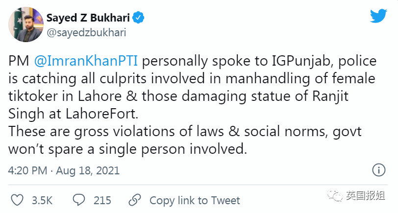 巴基斯坦总理Imran Khan也透过发言人表态,对这种行为绝不姑息。