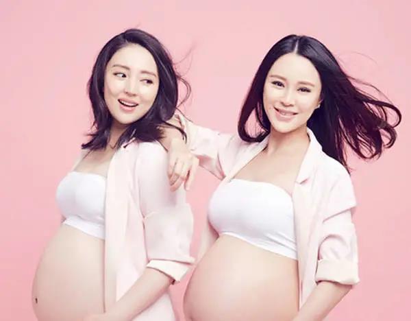 董璇(左)和关悦(右)孕期曾晒出一组写真,就有网友说:“目测董璇圆肚子生女儿,关悦肚子尖生应该是儿子”