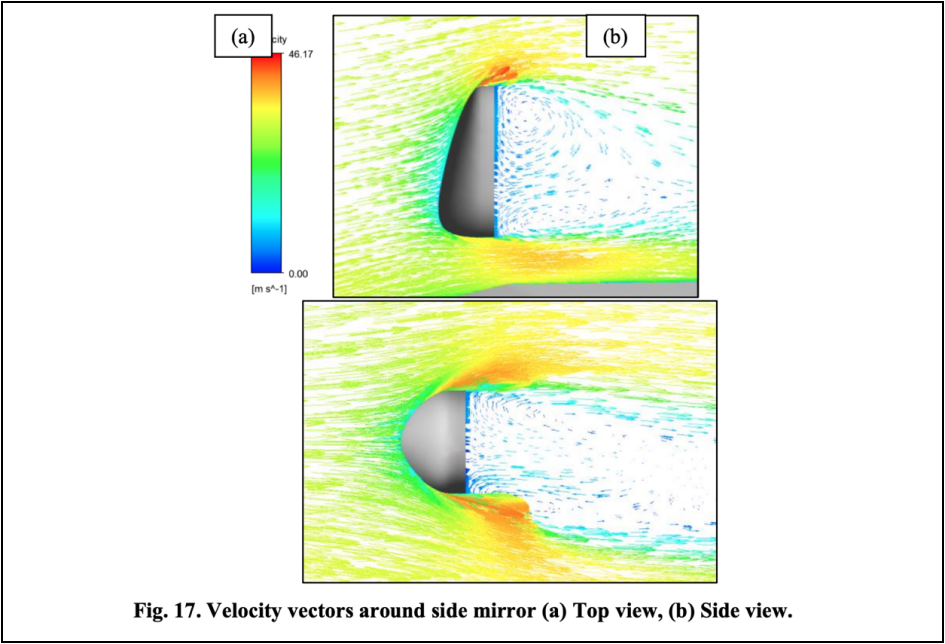 而在我们讨论的风阻层面,湍流会造成能量的损失,于是也就增加了阻力。这其实很好理解,因为能量守恒,激发这部分湍流空气运动的能量,终究还是来自于汽车本身,也就是说这部分能量白白损失在空气中了。后视镜湍流不会很快消失,它还会随着车身侧面向后流动,从而影响到后车身乃至车尾的空气动力学特性。