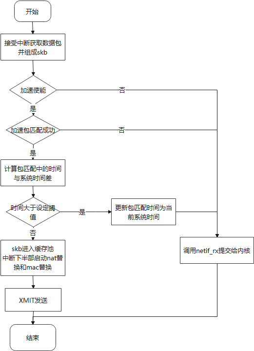 如图5所示,网卡接收到数据包进入到TCP/IP协议栈,如果匹配forward entry成功,则直接转发到对端网卡,如果不成功,按原来流程发送,并将sa_conn_tuple记录到forward entry中。