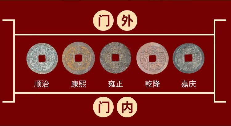 1、按顺治、康熙、雍正、乾隆、嘉庆的顺序,从上至下或者从左到右一字形排列,此为在“时间”上连续不断的发财之象。其主要摆放在过道、门路等处,预示着一路顺境、一路发财等。