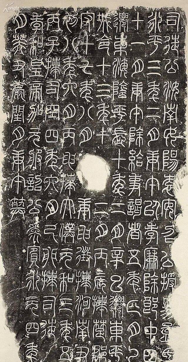 石鼓文是集大篆之成,开小篆之先河,在书法史上起着承前启后的作用。是由大篆向小篆衍变而又尚未定型的过渡性字体。石鼓文被历代书家视为习篆书的重要范本,故有“书家第一法则”之称誉。石鼓文对书坛的影响以清代最盛,如著名篆书家杨沂孙、吴昌硕就是主要得力于石鼓文而形成自家风格的。流传石鼓文最著名的拓本,有明代安国藏的《先锋》、《中权》、《后劲》等北宋拓本,现在日本。