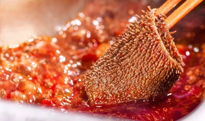 在辣汤里吸饱汤汁的毛肚,格外爽脆,诱人得令人无法拒绝,每一口都能收获满满咀嚼的快乐。