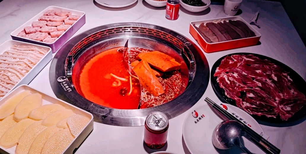 迷醉的灯光加持,看着微醺中慢慢升起的热气,这便是享受美食的最佳环境。约上一桌朋友,坐在这样绝佳的环境里,吃着可口的火锅,享受着服务员绝佳的挑菜服务,是何等的惬意呢~