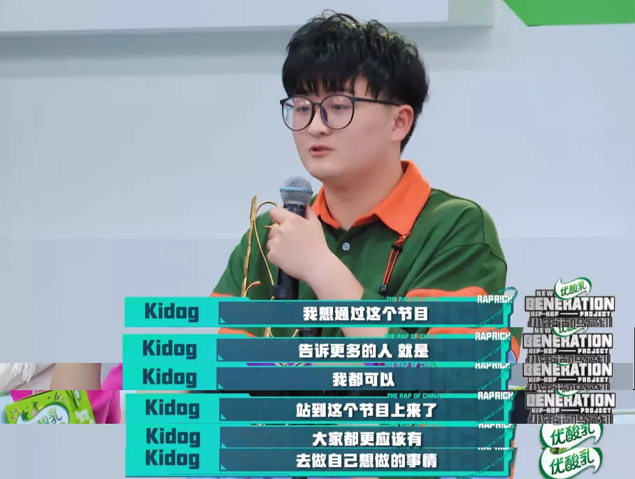 有人大胆追梦,也有人找到自己。台下谦逊乖巧甚至有些小结巴的Kidog,站在说唱的舞台上仿佛脱胎换骨,让全场惊掉下巴。