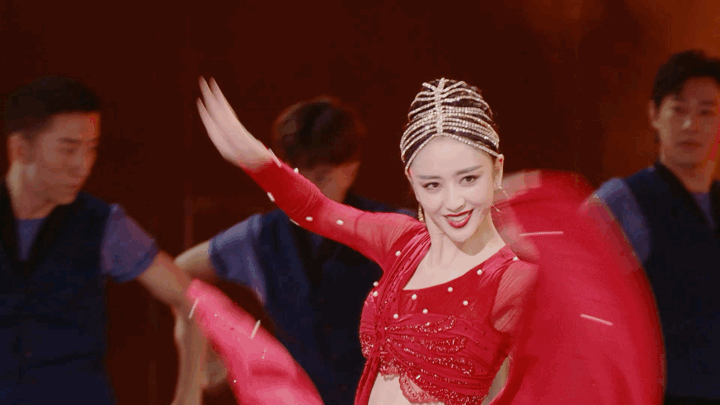 佟丽娅的新疆舞remix舞台《篝火》,异域风情火辣热烈,红衣配浓颜yyds!