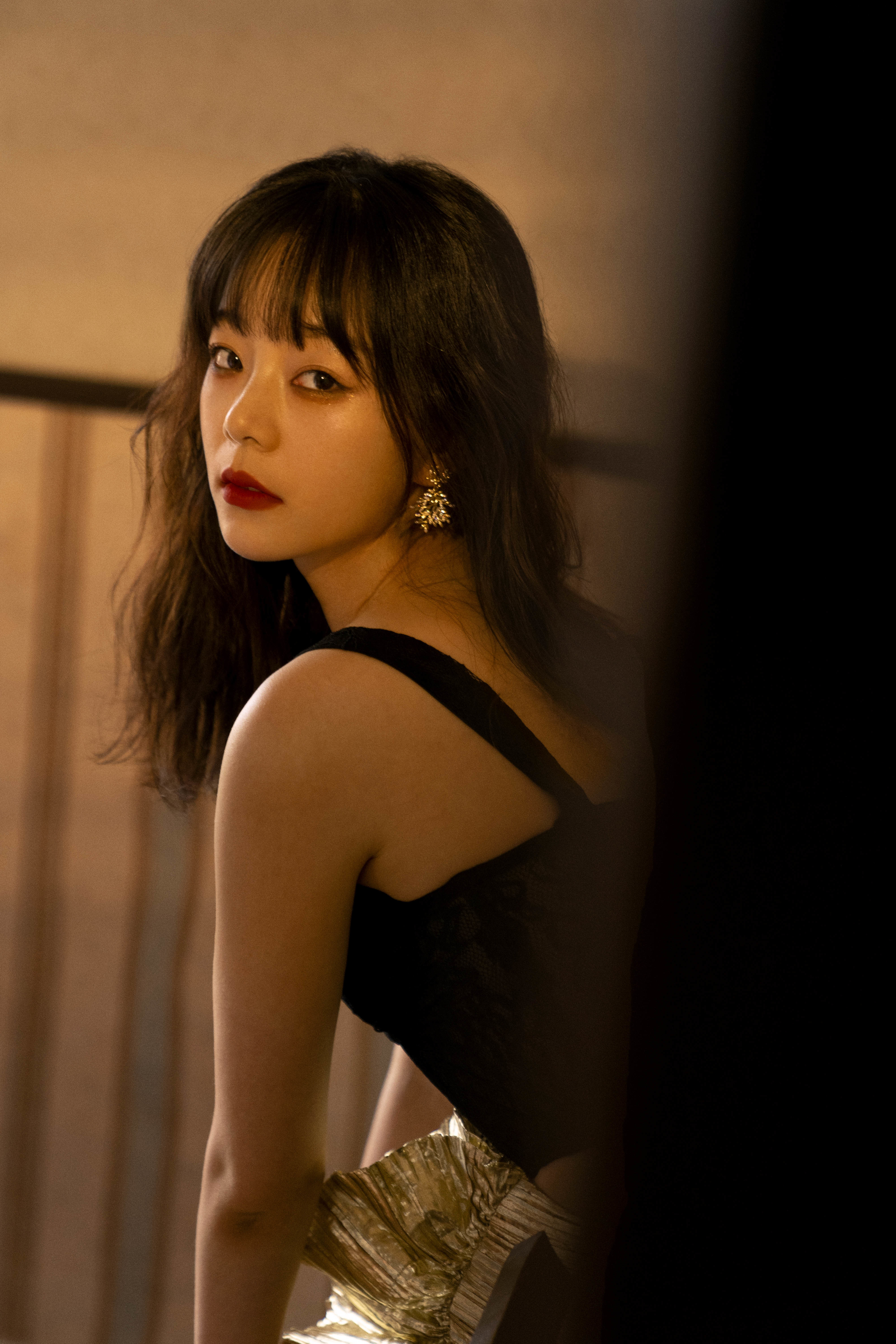 整个画面呈现胶片质感,暖光营造出鎏金般的高贵基调,佳人的气质和光影交织。