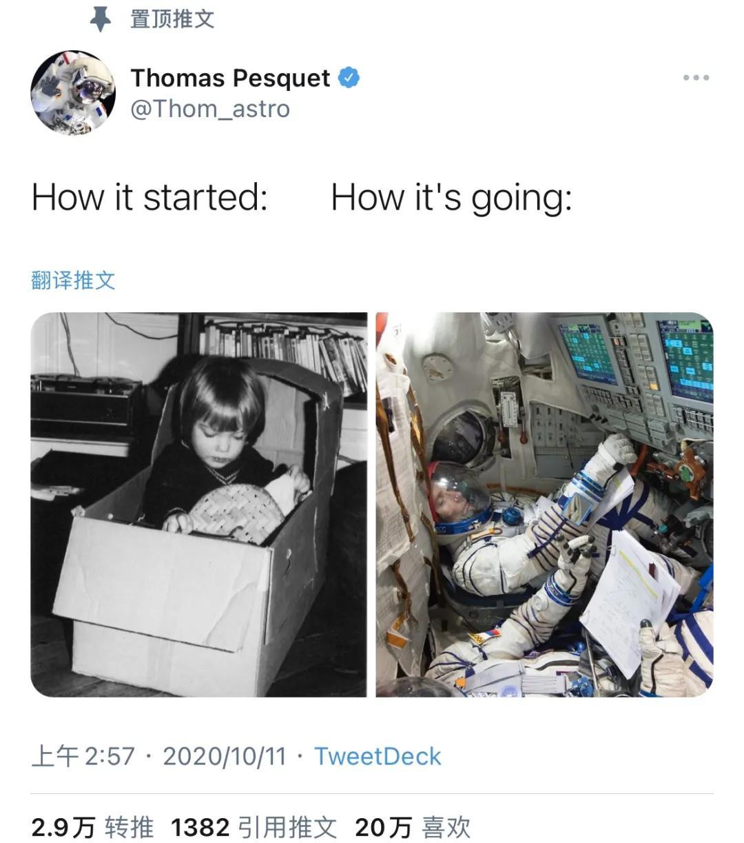 对托马斯来说,因为从小有宇航员的梦想,经过多年训练成功飞抵太空,所以他看到了不同于地球的日升日落,体验到了不一样的生活,得以和同事们进行尖端空间科学实验……