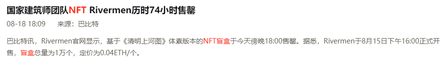 据了解,首批1000个由盲盒形式发售,并在2小时45分钟内全部售罄,相较于国内其它NFT盲盒动辄数十个小时的销售,MaskHuman的销售情况可说是火爆。