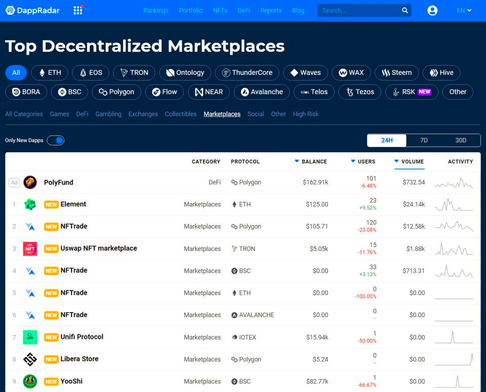 值得一提的是,Element也是目前为止亚洲地区唯一登上DappRadar排行榜前五的NFT综合交易平台,可以说Element已经成为目前亚洲最大的NFT综合交易市场了。