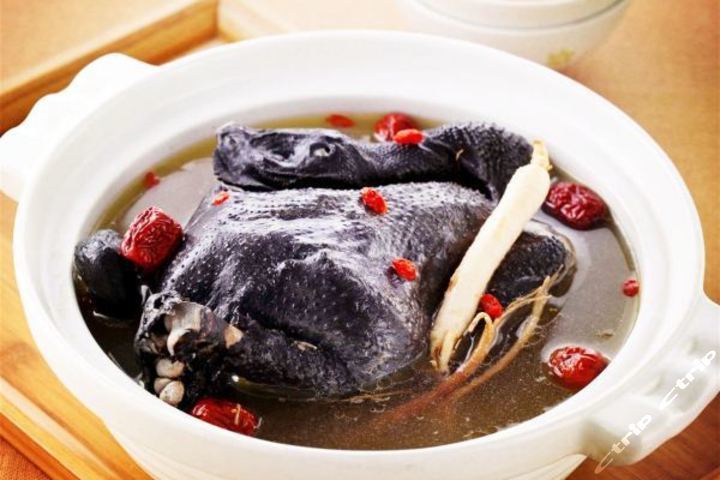 制法:1.先将乌骨鸡宰杀后,去除杂毛和肠杂。