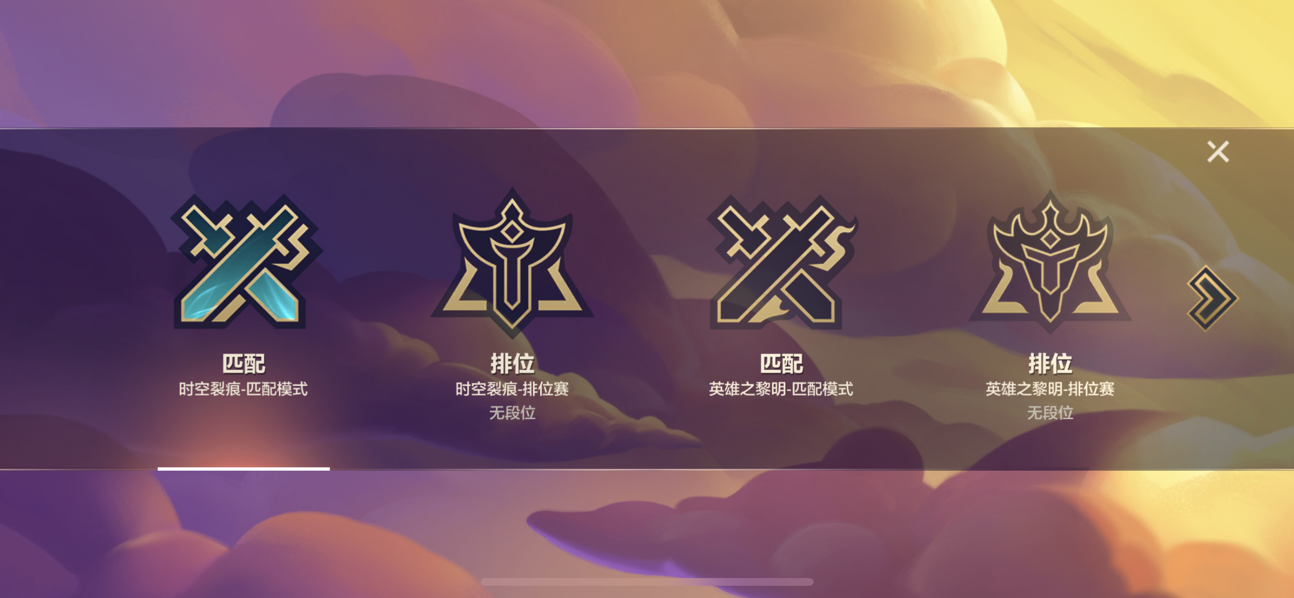 接下来看游戏内容方面,目前《金铲铲之战》主要包含两大常规玩法,也就是它的两个赛季——"时空裂痕"和"英雄之黎明"。这两个赛季都采用了单独的匹配和排位玩法的入口,,玩家想玩哪个都行,任君挑选~