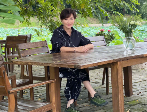 在古朴的中式庭院里,55岁的刘嘉玲留着一头干练的短发,倚在红木门上自然凹起了造型。她穿着一件薄丝上衣搭配黑色超短裤,展露一双笔直白净的长腿,找不到一丝赘肉,令人连连称赞。