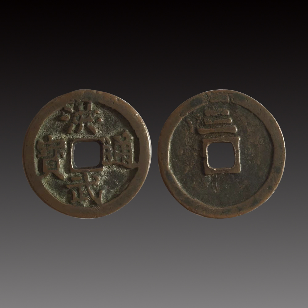 In the first year of Hongwu (1368 AD), Zhu Yuanzhang, emperor Taizu of the Ming Dynasty, ordered baoyuan Bureau of the Ministry of Industry and baoquan bureau of the provinces of The capital (Nanjing) to cast "Hongwu Tongbao", and the ministry of Industry was in charge of casting money, under the Baoyuan Bureau. The Annals of Food and Goods in the History of The Ming dynasty said, "(Wu Shen and Taizu) ascended the throne and awarded hongwu Tongbao money. The system was five: when ten, when five, when three, when two, when one. When ten coins weigh one or two more, the balance drops to one." Qian Wen real book, direct reading. According to hunan Changde Chinese collectors Association member Zhou Xinguo Mr. "Wuling Tibetan treasure" textual research: Wu two years (1368) in the first month, Zhu Yuanzhang emperor, the establishment of the Ming Dynasty, yuan Hongwu; In March of the same year, open casting "Hongwu Tongbao" money, still following the large and medium money type, line five money.