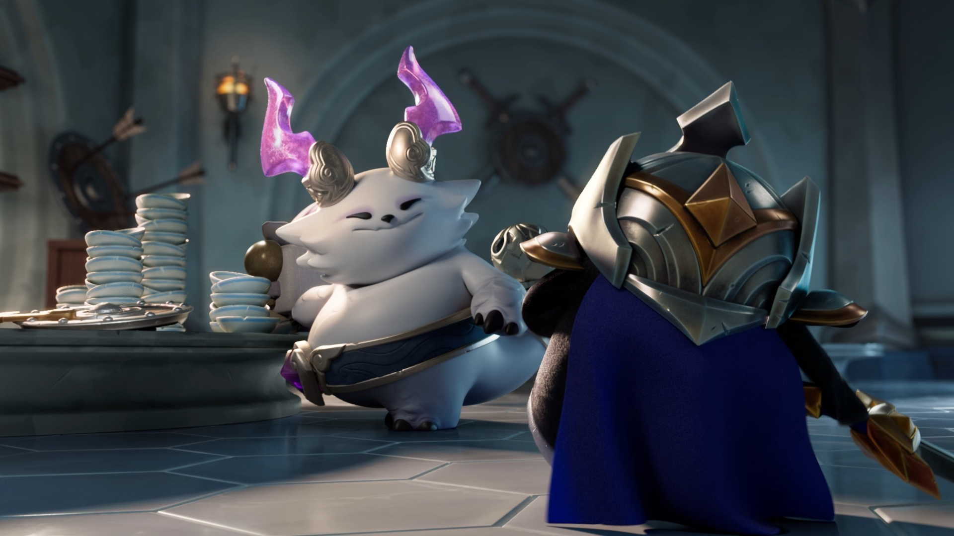 看完全片,在回头看看主角们——羽饰骑士、胖胖龙和小瑞、小河灵,这些都是会在金铲铲之战里上架的小小英雄。来到CG里的他们就显得更加活灵活现和生动可爱了!尤其是羽饰骑士和胖胖龙这对滚滚组合,连小编这样的猛男看了都完全招架不住!