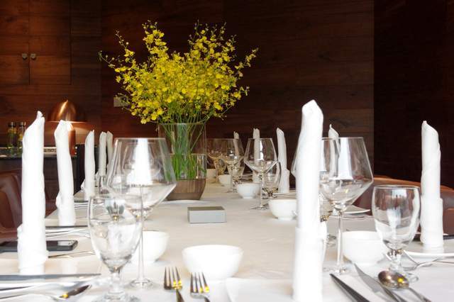小型聚会的现场,搞得很正式的样子,就是这种长条桌不太符合咱们中国人一口锅里捞食的习惯,所以要嘛菜肴点两份,以便照顾两头 ,要嘛大家配合默契,且不嫌其烦总是端盘子换菜。