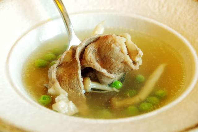 一直无法对鸡茸汤,蘑菇汤,红菜汤,罗宋汤等加了奶油或面粉的汤,或者莫名其妙的酥皮汤有好感,好在这家牛排馆这家牛排店有牛肉清汤,虽然呈现形式有点西式,但它起码喝起来不糊嗓子!