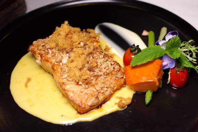 烤三文鱼排:喜欢生吃三文鱼的人往往不喜欢煮熟的吃法,因为这种成熟大鱼的肉质无可避免地会显得松散,干巴。不过熏烤后香气得到增益,既然质感较为粗涩,那么选择多用点滑润的酱汁平衡吧。