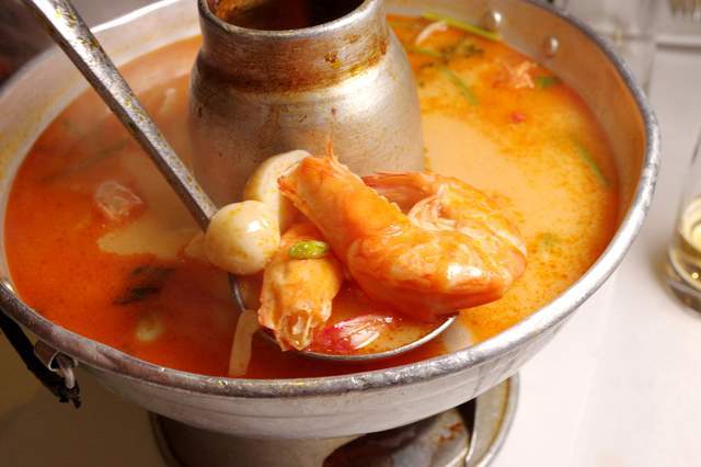 冬阴功汤:见惯了国内各种东南亚餐厅,乃至“地道泰国菜”的不阴不阳的冬阴功,再吃吃这边酸得提神辣得到位的汤就知道哪个才是靠谱的。