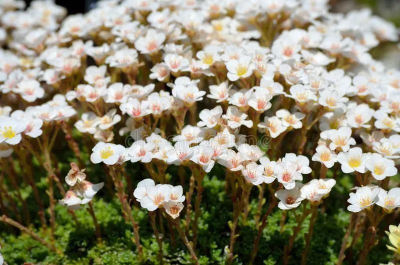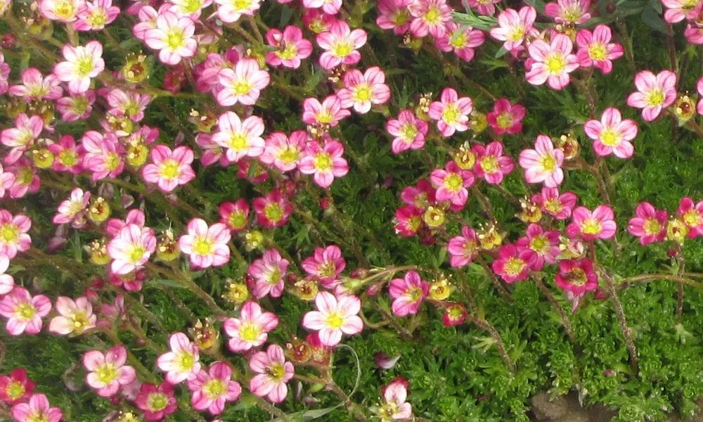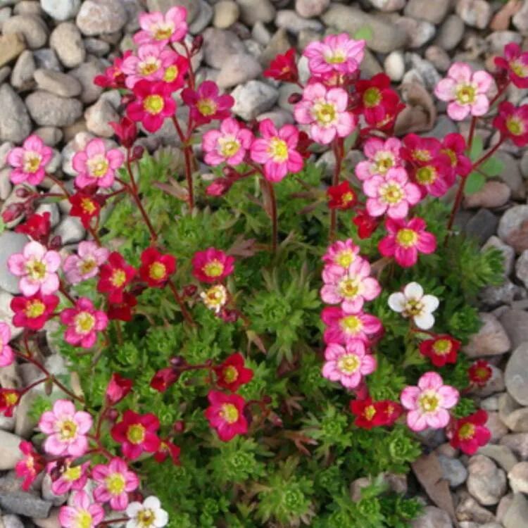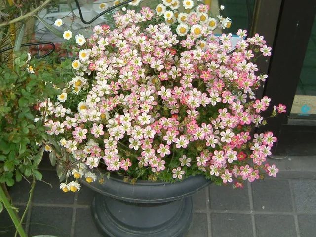 高山虎耳草它是一种观花类的虎耳草品种,它的花色有白色、粉色(花色渐变)和红色。它的小花长得极其小巧,花瓣都是5片的,中间有黄色的花蕊,它的花量比较多,且花期比较长,一般都是在春夏季节开花,花期可以维持1~2个月以上,而且它能够忍受零下10多度的低温,这一点是其他品种无法媲美的。