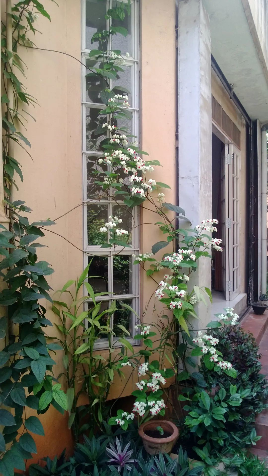 上面是窗台边的盆栽白萼龙吐珠
