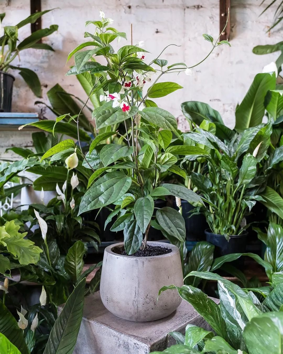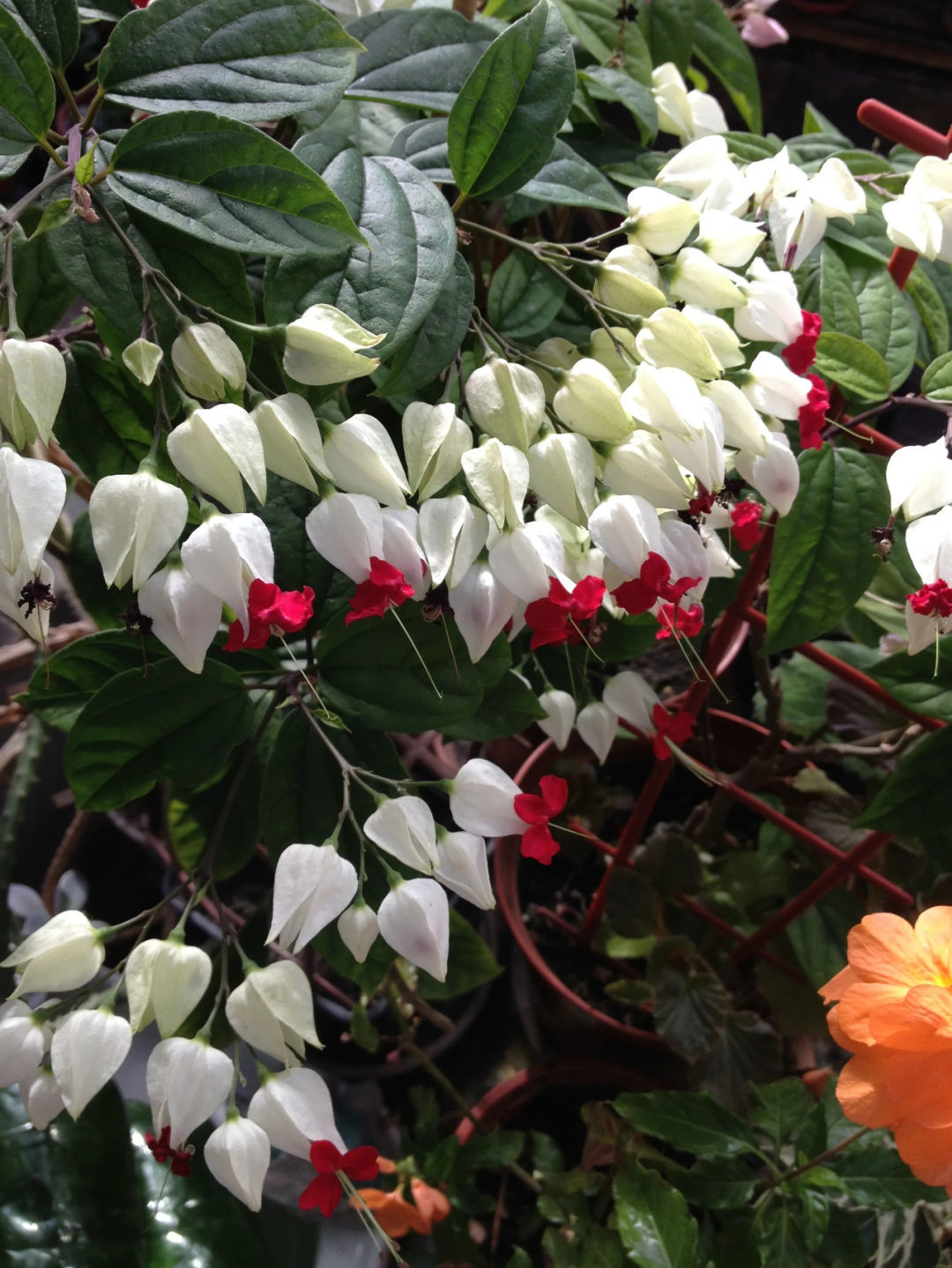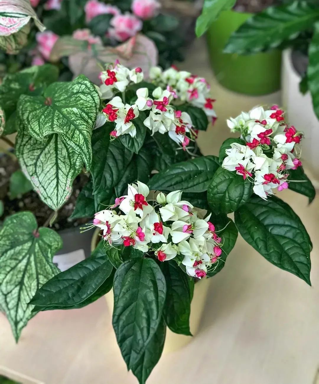 龙吐珠(Clerodendrum thomsoniae)是很适合养在半阴处的,它是大青属的开花灌木,有着卵形的翠绿叶子,花朵如同一个个小铃铛,花朵一般由白色和红色组合而成,有较长的花蕊伸出来,形成独特的观感。