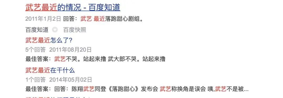 武艺则一直没火起来,这么多年似乎一直都待在《落跑甜心》剧组里。