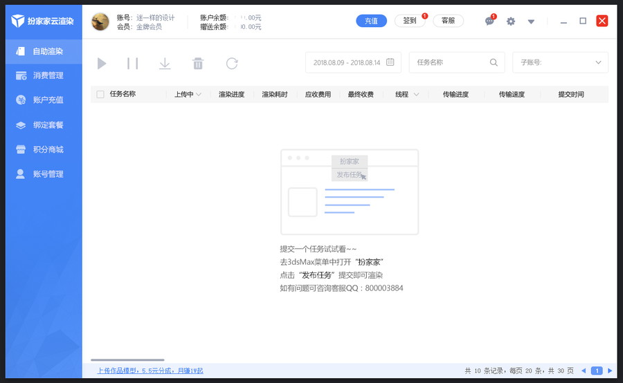10.可在扮家家云渲染客户端上查看渲染情况和任务进度,完成后可下载。