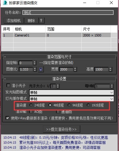 6.根据需求渲染速度,分别有24线程(单机)、48线程、96线程和192线程