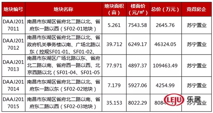 2017年7月14日,省府大院5宗地块全部被苏宁置业拿下,底价成交,总价24.35亿元,总面积165亩。苏宁首次进入南昌市场,便占据了南昌核心地段。