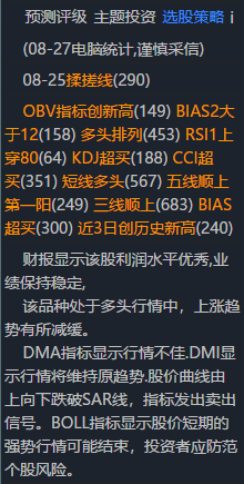 财报显示该股利润水平优秀,业绩保持稳定该品种处于多头行情中,上涨趋势有所减缓DMA指标显示行情不佳DM显示行情将维持原超势股价曲线由上向下跌破SAR线,指标发出卖出信号。BOL指标显示股价短期的强势行情可能结束,投资者应防范个股风险。