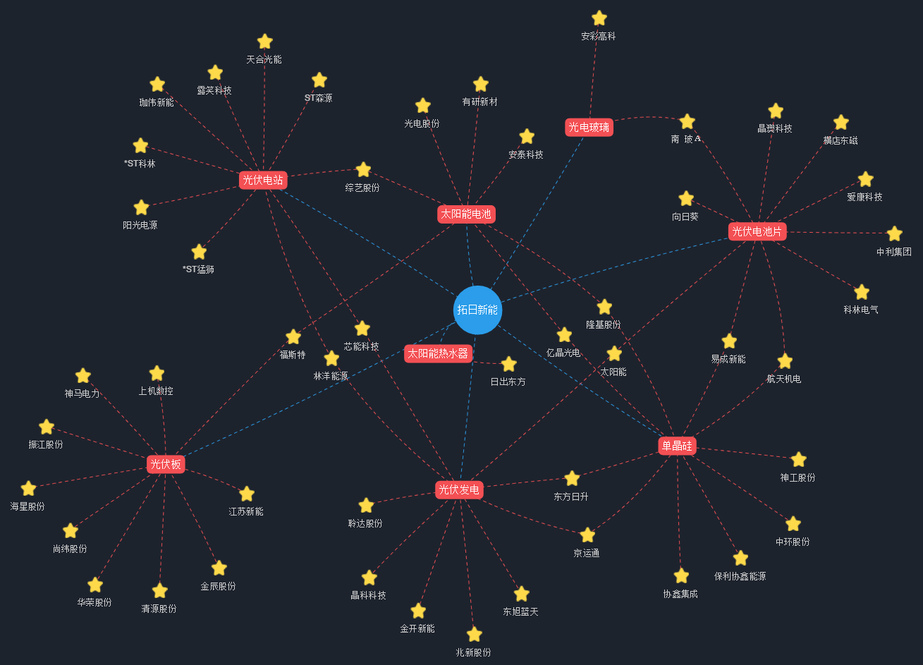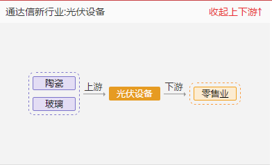拓日新能所处行业是光伏设备。他的上游是陶瓷、玻璃,下游是零售业。