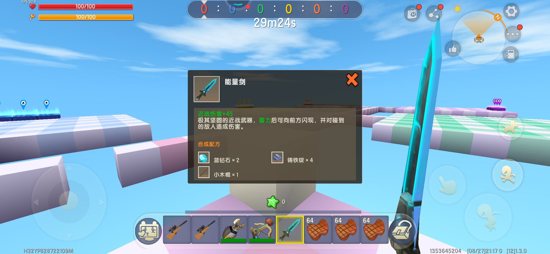 除了用于攻击的狙击枪之外,还有非常多的辅助道具。其中最有意思的就是喷射塞子了,该道具可以抓取远处的方块过来,射程还非常的远。想象一下你正在狙击别人的时候,突然就被旁边的人把堡垒给拆了,一定很好玩。除此之外还有抓钩等等很多的辅助道具,大家在进图之后可以自行去体验。