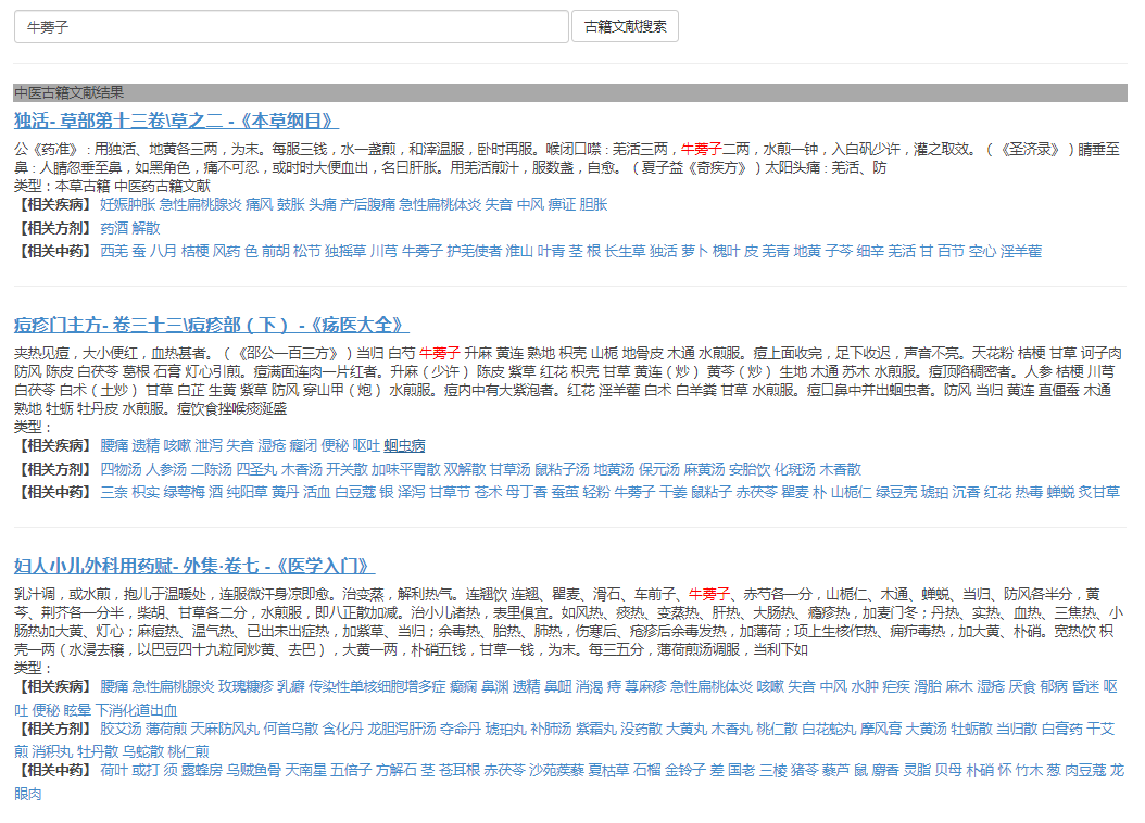 牛蒡,因其含有极高营养价值,冠有“蔬菜之王”和“赛人参”称号,野生牛蒡多生于路旁、荒地、林边和村镇附近等。牛蒡全株可入药,牛蒡根和牛蒡子都具有清热解毒等作用,但两者有区别,牛蒡根归肺、心经,功效侧重于祛热风,消肿毒,一般应用于食疗方,多与肉类煲汤食用,深受养生人士青睐;牛蒡子归肺、胃经,侧重于散风热,宣肺透疹,解毒利咽,多作药物使用。如今,随着大健康行业的兴起,人们对牛蒡相关产品的关注度越发增高,也因此衍生出很多便捷食品,例如牛蒡茶,可用于消脂美容;牛蒡啤酒,可在满足饮酒需求时,达到对身体的保养;牛蒡乳酸饮料,可促进肠道蠕动,达到润肠通便目的。那么,这样一味宝藏药食两用食物,还有哪些我们所不知道的“秘密”?本文将从大数据视角着重介绍牛蒡子的基本信息和相关研究,欢迎大家收藏点赞哟。