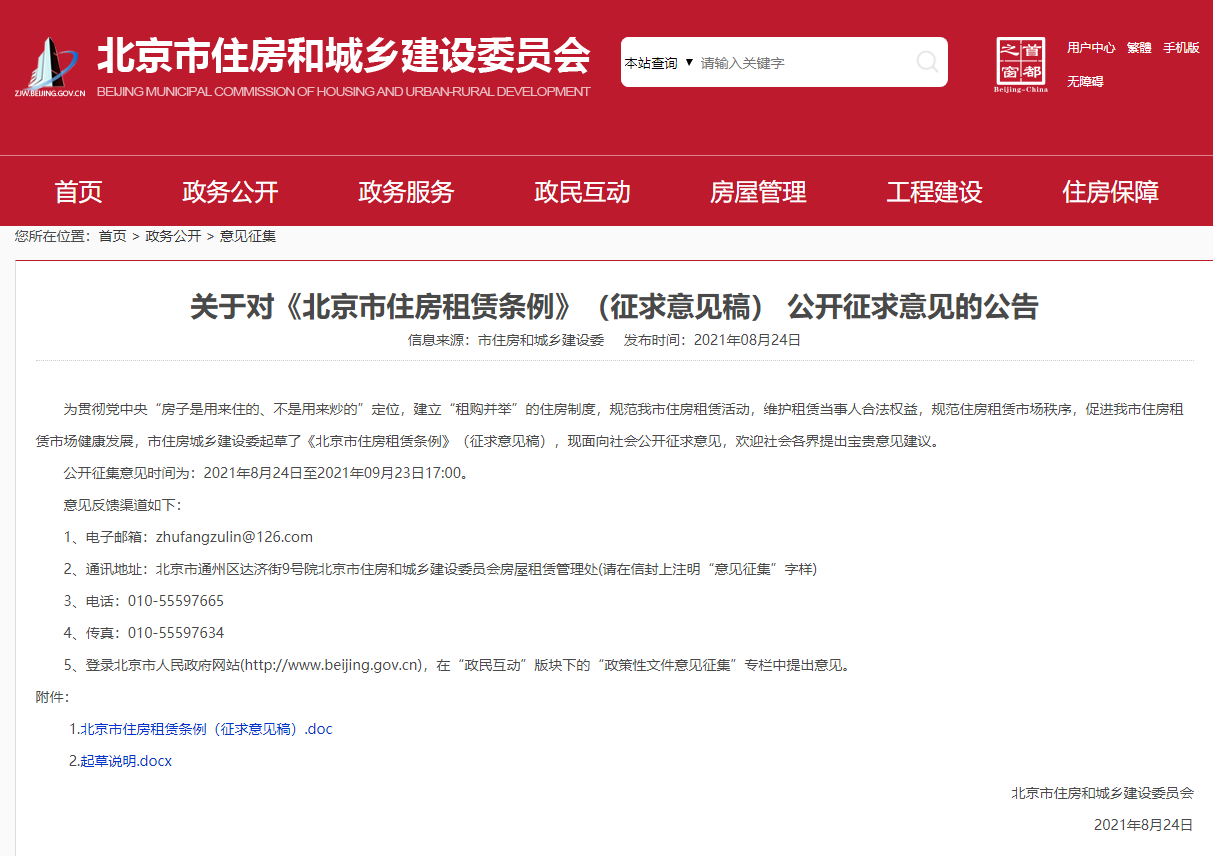 8月24日,北京市住建委发布了《北京市住房租赁条例(征求意见稿)》(下称《意见稿》),对长租公寓、租金贷、群租房等热点问题予以规范,这也是继住建部公开住房租赁条例后,首部公开的地方性住房租赁条例。在公开征求意见并修改完善后,草案将提交市人大审议,预计明年上半年左右审议。