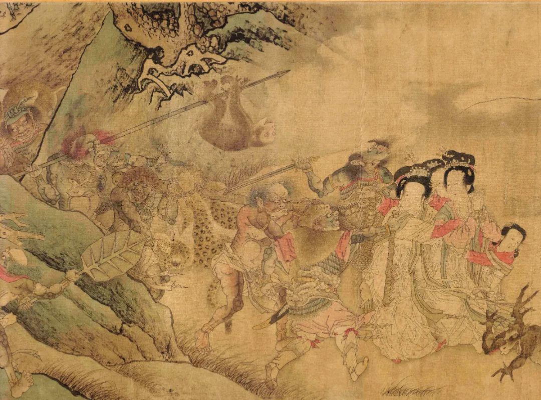 宋代《二郎神搜山图》局部,故宫博物院藏。二郎神逮到了一只猴妖。唐宋以后,二郎神搜山的题材很流行。