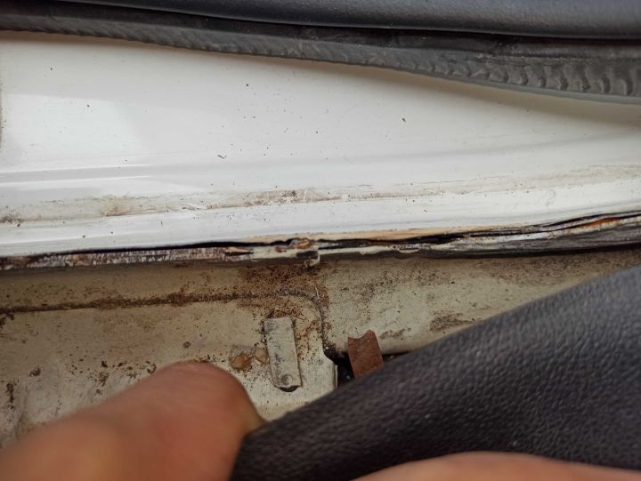 细细排查,终于在下门槛找到了另一个切割点,前半段门槛是后期重新焊接的,跟后半段的缝隙完全不一样。