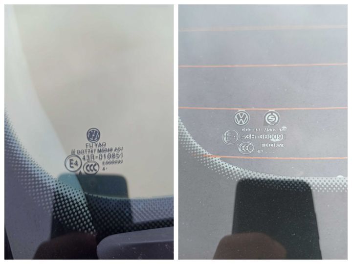 前挡风玻璃制造日期是14年12月,而车辆是16年8月出厂的,玻璃的日期过早了,而且跟后挡风玻璃对比一下就知道,玻璃厂家变成了福耀,所以前挡玻璃是后更换的。估计跟左前的事故脱不了干系。